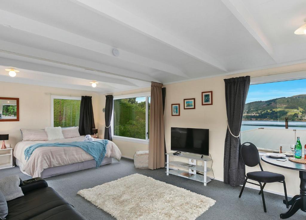Macbay Retreat is a cosy, romantic holiday home, perched on a hillside overlooking Macandrew Bay with a fabulous view of the Otago Harbour.